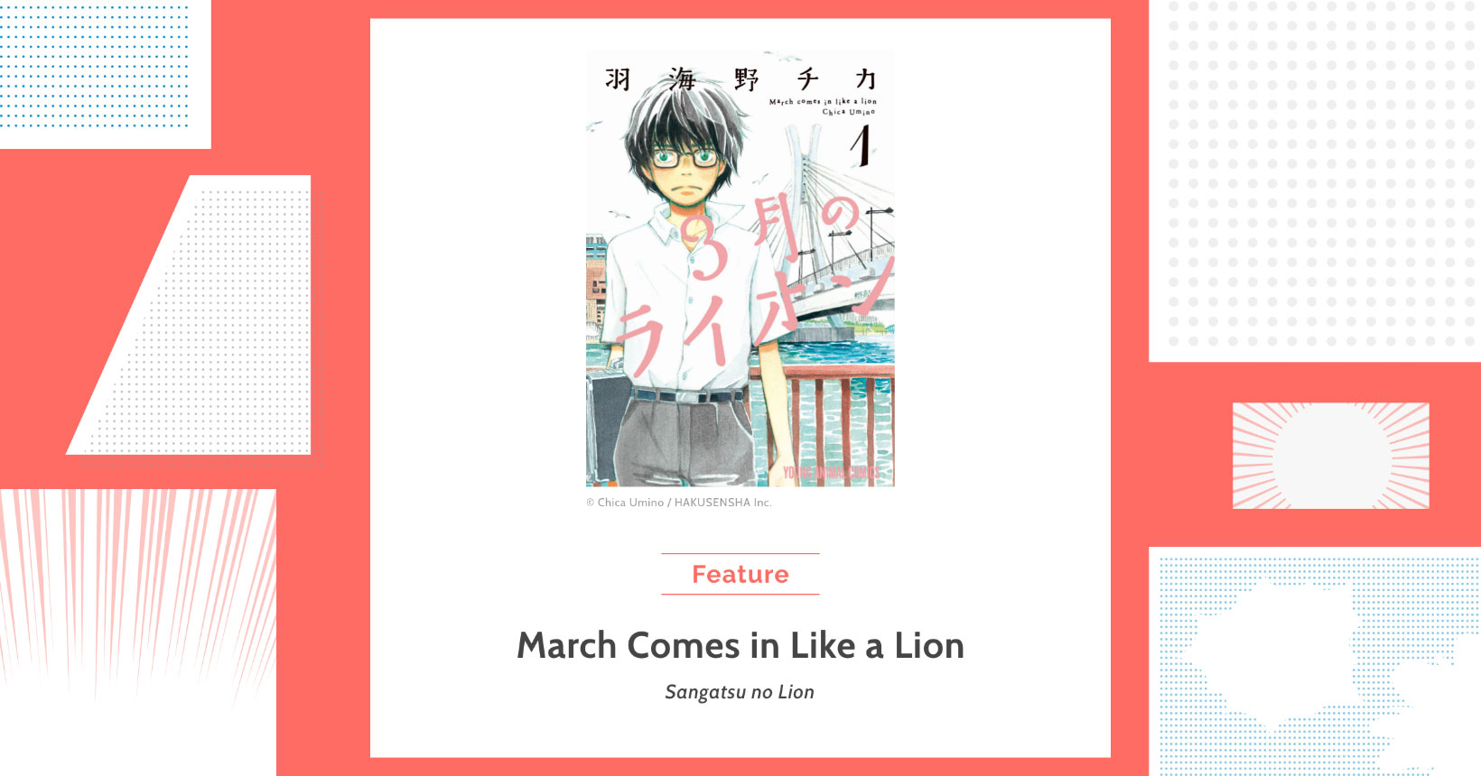 UMINO Chica’s March Comes In Like a Lion, which won the Grand Prize in the Manga Division at the 24th Japan Media Arts Festival, is on display. In addition to a special long interview with UMINO Chica about the work, the cover illustrations of every volume and pages selected by the curator are displayed. You can also enjoy reading the first chapter from the first volume.