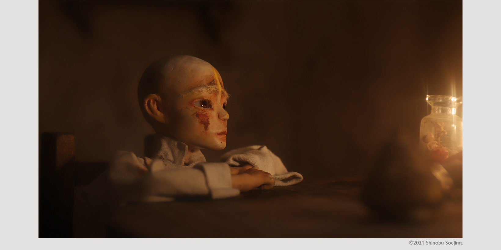 | レビュー | 砂漠で1人暮らす若い隠者は、一匹の羽虫を殺してしまう。その後、彼は羽虫の影に追われ、悪夢のような幻にうなされるようになる 悪意と罪悪感そして祈りについての誰しもが経験のある心情を、息遣いを感じる人形アニメーションで描いた作品。ライティング、角度などによって人形の持つポテンシャルを最大限に引き出し、人形が自ら意志を持ち成長をしているようにすら見え、繊細で独特の世界感を作り上げている。(若見 ありさ) |