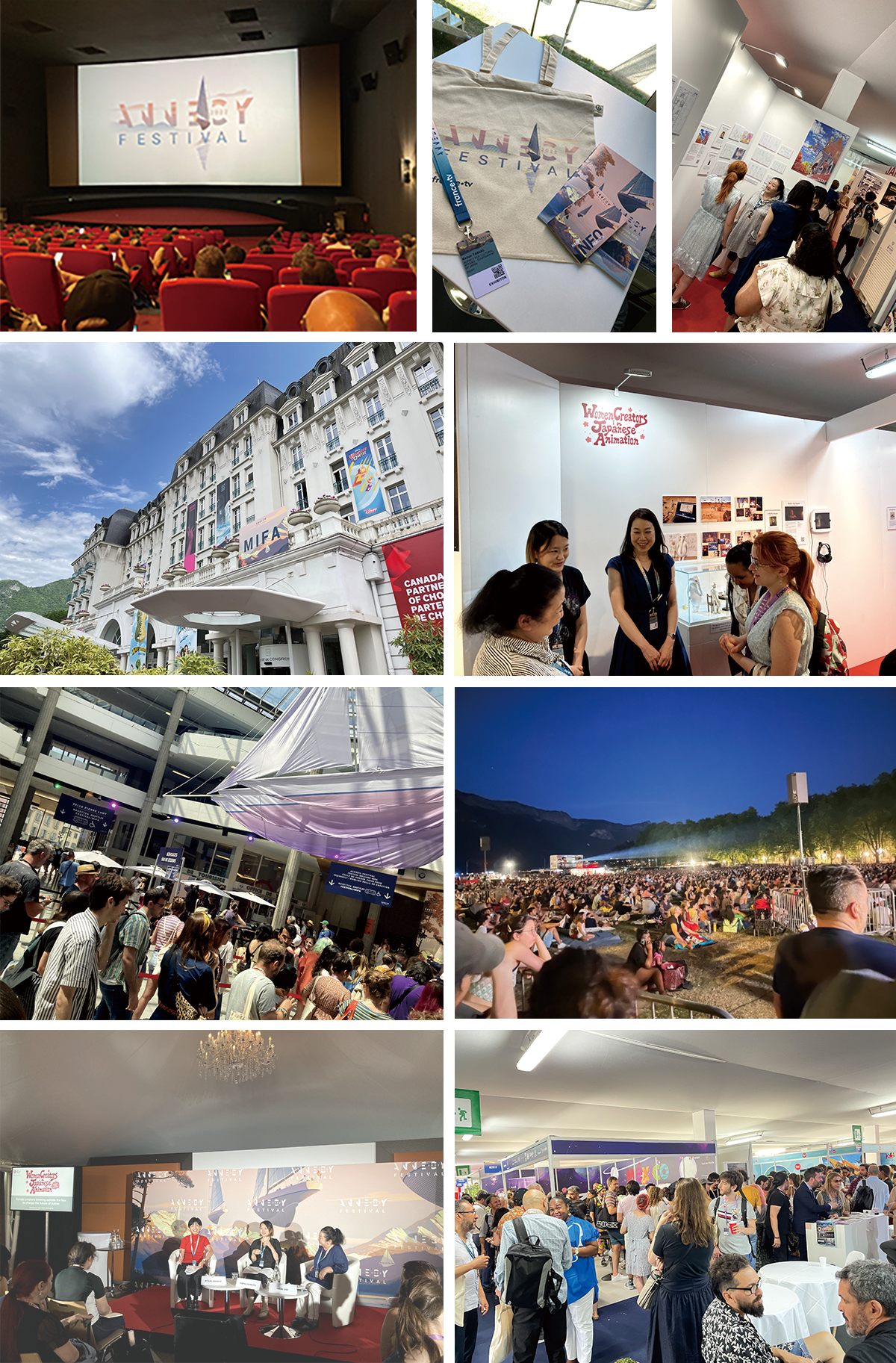 期間中は300回の上映と、165以上のイベントやセミナーなどが実施され、無料の野外上映の合計観客数は、約50,000人にも及びました。今回は企画ディレクターに岡本美津子氏、企画コ・ディレクターとして関弘美氏と若見ありさ氏を迎え、アヌシー国際アニメーション映画祭2022併設見本市MIFAにブースを出展し、会期中にトークイベント、上映、レセプション等を実施いたしました。