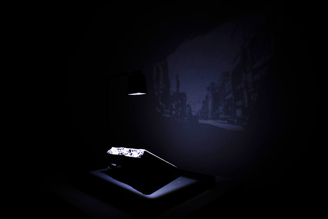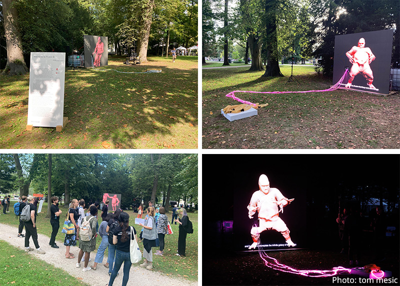第25回文化庁メディア芸術祭アート部門で新人賞を受賞した平瀬ミキの『三千年後への投写術』は、Ars Electronica Gardens Exhibitionの展示会場であるScience Park 4内に、新作1点を含む計3点が展示されました。