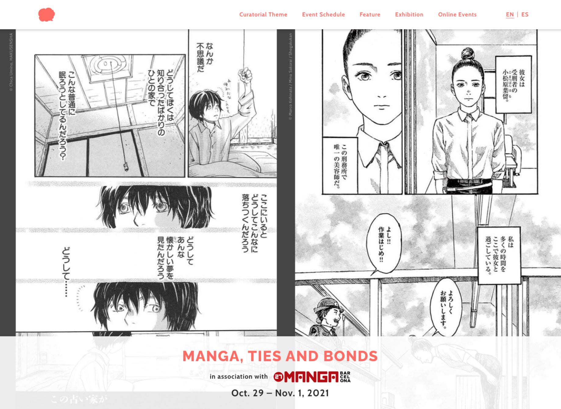 本企画は、昨年に引き続き、バルセロナ在住のマンガ研究家・翻訳家であるマルク・ベルナベ氏を企画ディレクターに迎え、「MANGA, TIES AND BONDS」(マンガ、タイズ アンド ボンズ)を企画テーマに、特設サイト(スペイン語・英語)では第24回文化庁メディア芸術祭マンガ部門大賞受賞の羽海野チカ『3月のライオン』の特集展示と、企画テーマの下、企画ディレクターが選んだ 7作品を紹介しました。また、オンラインイベントとして、特設サイトで作品を紹介したマンガ家によるトークセッション等を実施いたしました。