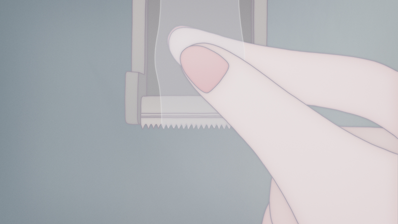 © MIYU Productions, New Deer, Yoriko Mizushiri身体は常に何か違うことを感じていたい、安定することがない「不安な物体」だと思う。 セロテープを指で引っ張って切る。そんな何気ない動作から身体は何を感じるだろう。 質感、形、伝わる感触、あらゆるイメージが境界なく呼び起こされ混ざり合っていく。感じることを繰り返して少しずつ変化していく身体の感覚を、アニメーションとして表現した作品。